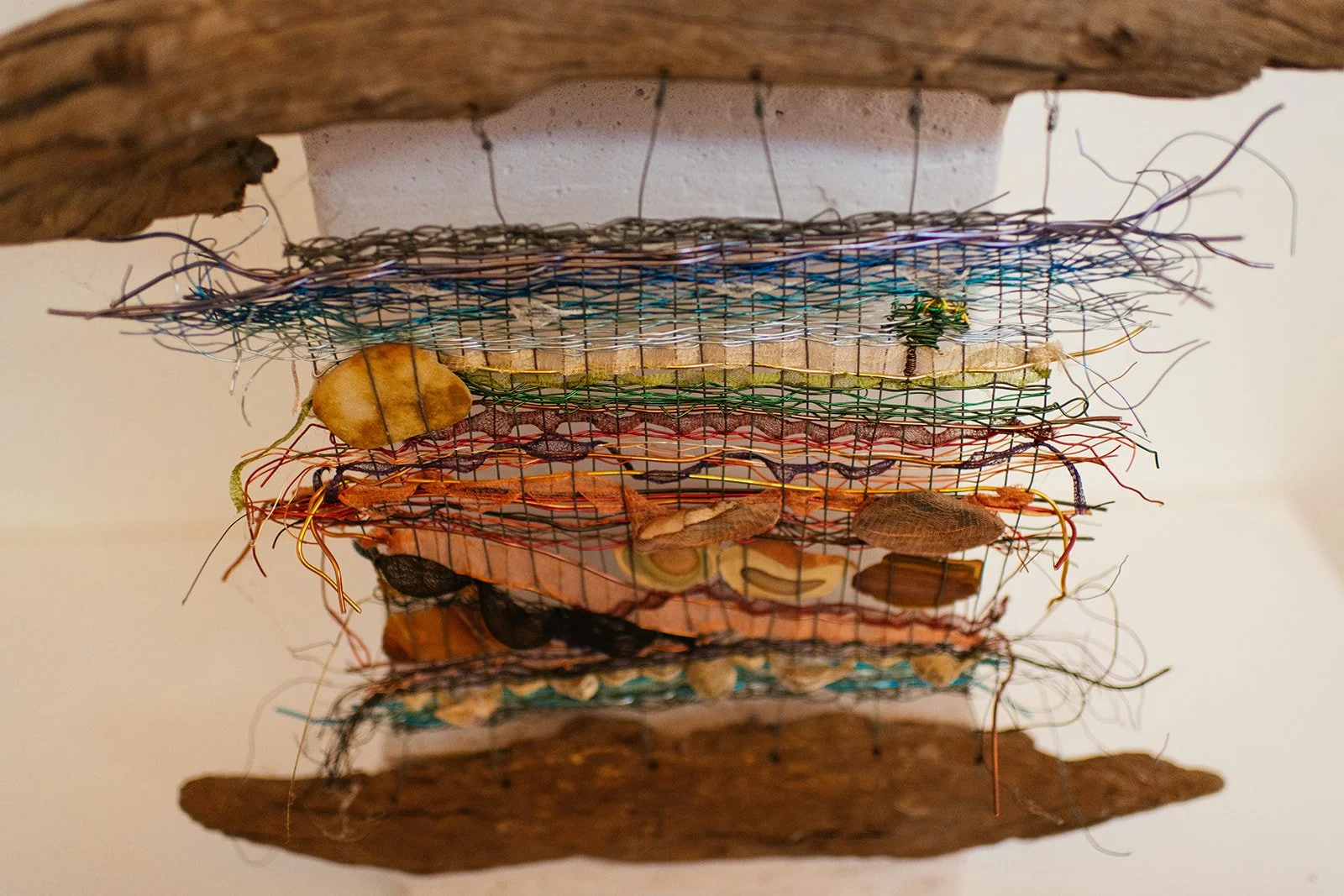 Rowena has an unmistakable talent that can turn even the most ordinary objects into beautiful works of art. Visit the studio to view all of Rowena’s art including these beautiful rock and wire sculptures.