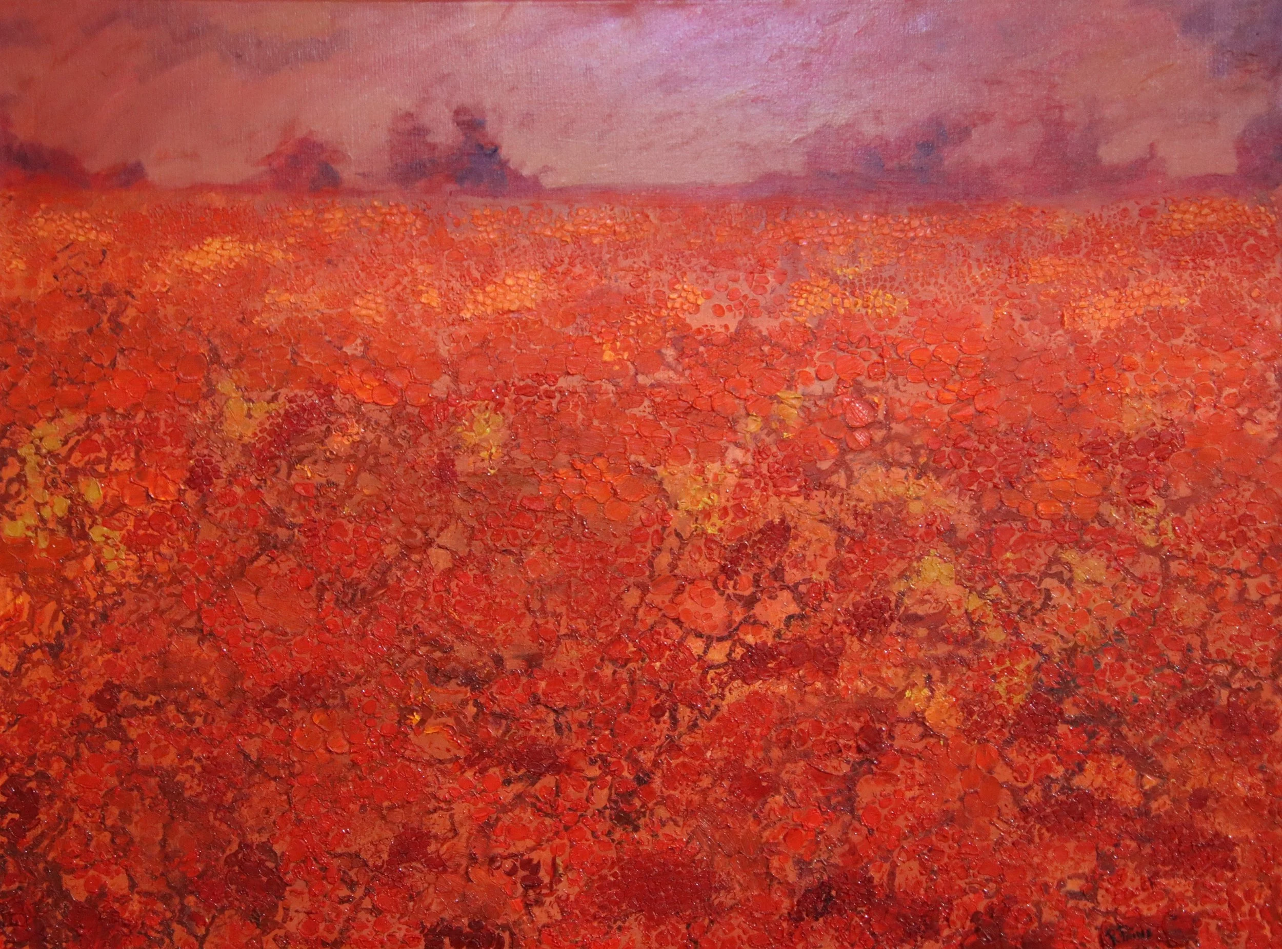 Red Earth is one of those pieces — a tactile work built from layers of paint to mimic the skin of the land, cracked and weathered under a relentless sun. It’s a deceptively quiet landscape: dry, dusty, and scarred, yet brimming with hidden life. Its worn face is a reminder of our own fleeting time here.