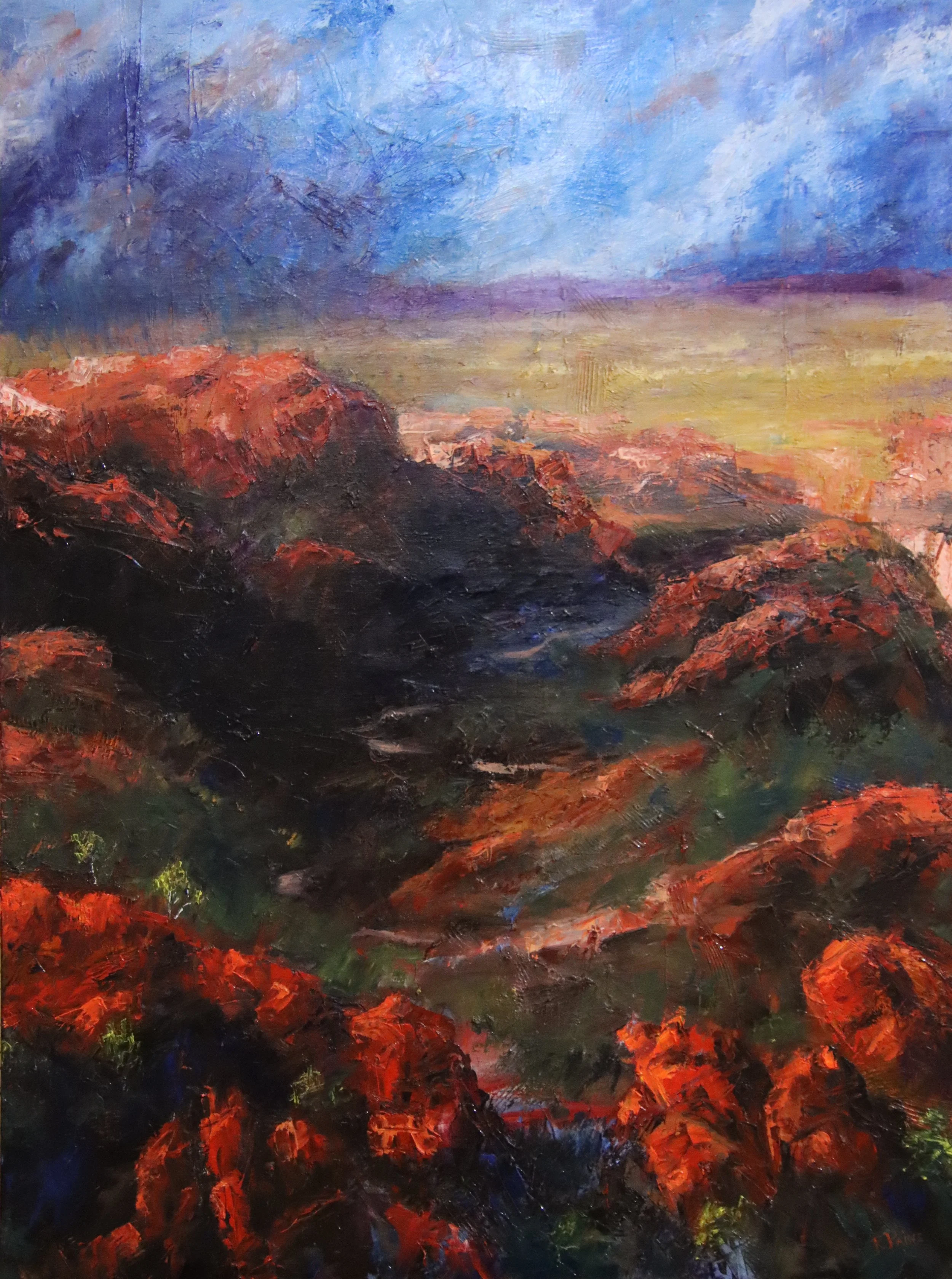 I don’t paint pretty postcard pictures, I paint reality. It’s a portrait of resilience, a landscape shaped by time, seared by heat, and carved by flood. This is real Australia—untouched by man, raw and alive.