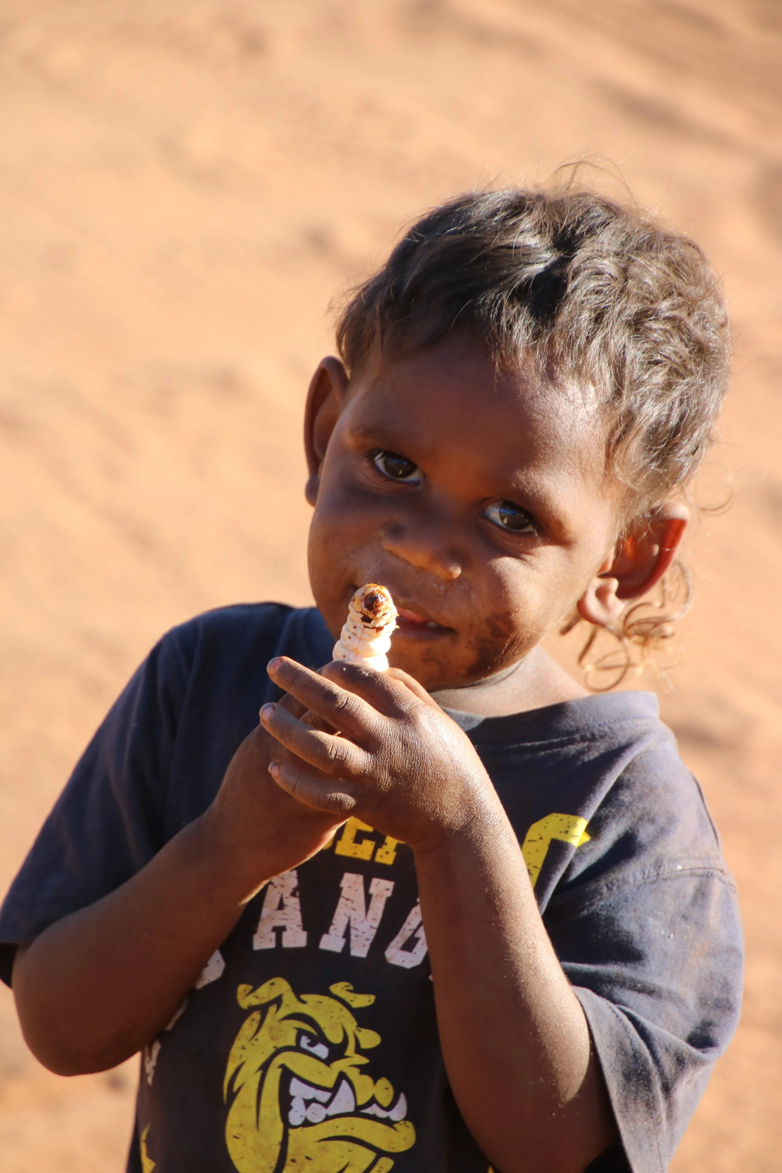 I wandered along the creek bank and found a wild passionfruit vine heavy with bright orange fruit — and ants. Millions of them. It took quick fingers to pick the fruit and toss it into the coolamon before the ants swarmed up my arms. By the time I came back, the women had found witchetty grubs in a gum branch. They split the wood and, with a hooked bit of wire, teased the fat white grubs out of their holes. Into the coolamon they went. Eaten raw they were squirmy, but roasted on the coals they tasted buttery and nutty.
