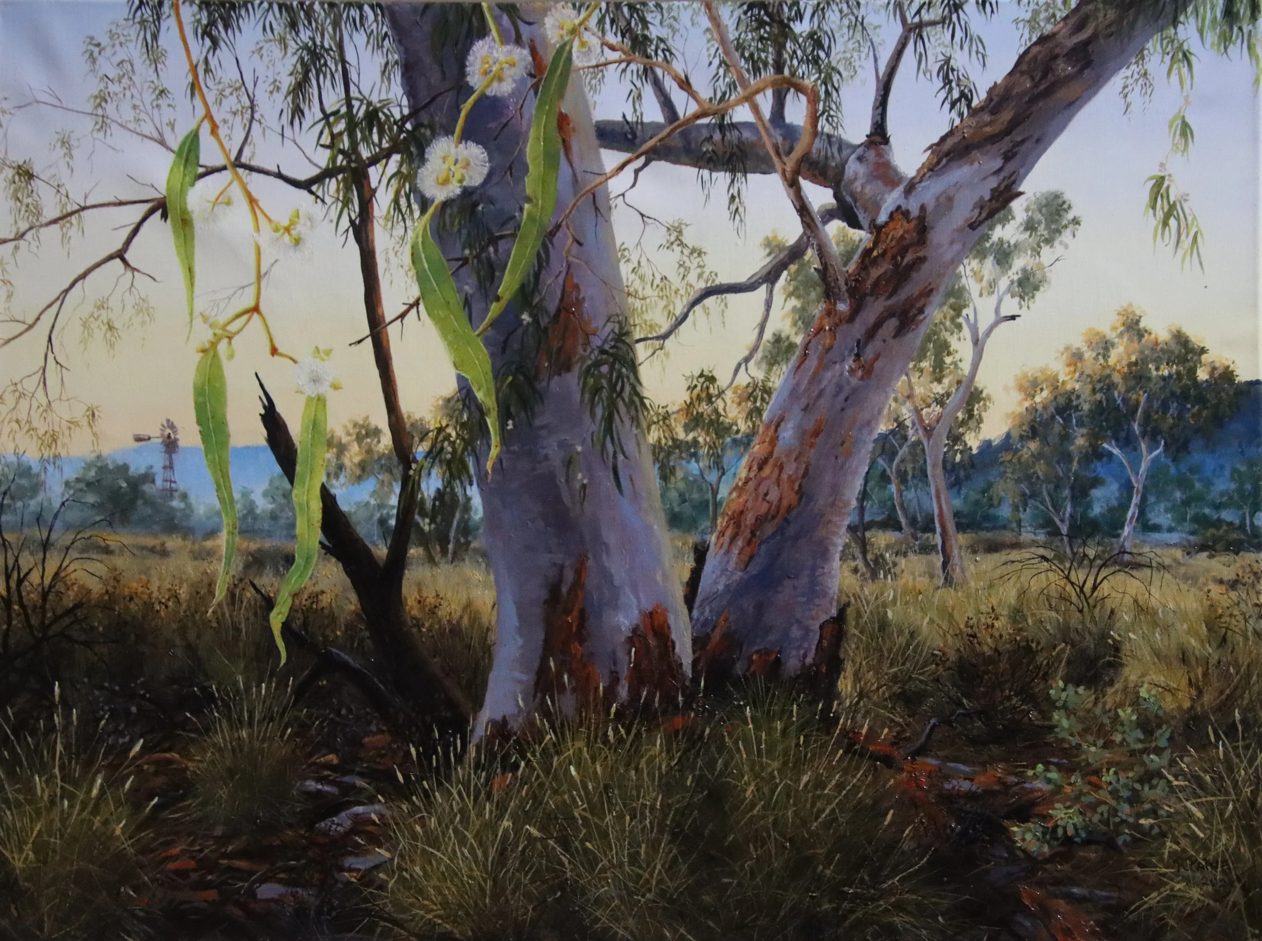 I’d love to do more plein air painting, but in Mount Isa, there are only a couple of weeks each year when the weather is cool enough to make it possible. So, I take a lot of photos. Since I’m usually up at 3am each morning to paint, working from my own photo references is essential. But even though I’m indoors, I can still feel the essence of the bush—the early morning birdsong, the thump of a wallaroo bounding out of sight, startled by this crazy old lady disturbing its peaceful hilltop vista.